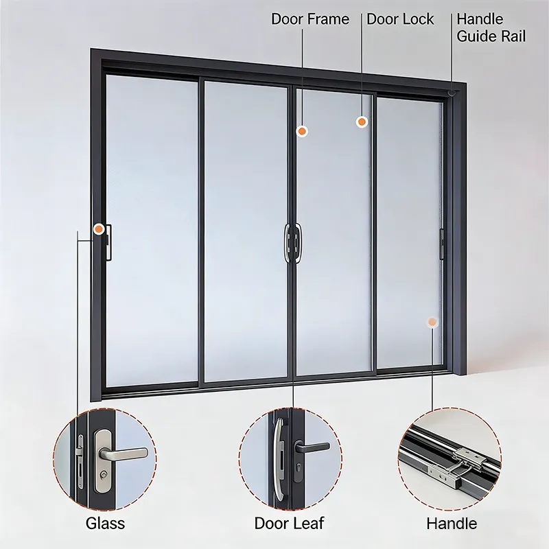 ॲल्युमिनियम मिश्र धातुचे सरकते दरवाजे उच्च श्रेणीतील निवासस्थान, व्हिला आणि व्यावसायिक इमारतींसाठी, विशेषतः टायफून आणि पावसाळी भागात योग्य आहेत. बाल्कनीचे दरवाजे, विभाजनाचे दरवाजे आणि स्टोअरफ्रंट दरवाजे म्हणून मोठ्या प्रमाणावर वापरले जाते.