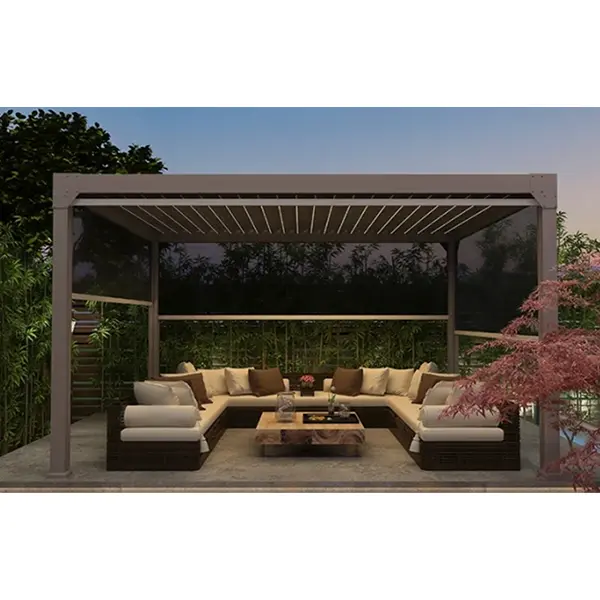 एक व्यावसायिक गॅझेबो उत्पादक म्हणून, आम्ही आमच्या इलेक्ट्रिक रिट्रॅक्टेबल गॅझेबॉसमध्ये इंपोर्टेड सायलेंट मोटर्स आणि लपलेली ड्रेनेज सिस्टीम एकत्र करून सूक्ष्म डिझाइन समाविष्ट करतो. हे सुनिश्चित करते की आमच्या गॅझेबॉसमध्ये बुद्धिमान नियंत्रण, स्ट्रक्चरल स्थिरता आणि हवामानाचा प्रतिकार ही मुख्य वैशिष्ट्ये आहेत, तसेच आकार, रंग आणि कार्यात्मक मॉड्यूल्सच्या वैयक्तिकृत सानुकूलनास समर्थन देखील देते. ते लायटिंग आणि रोलर ब्लाइंड्स सारख्या ॲक्सेसरीज एकत्र करू शकतात, व्हिला अंगण, टेरेस आणि व्यावसायिक विश्रांती क्षेत्रे यांसारख्या विविध परिस्थितींशी जुळवून घेत, विविध बाह्य जागांसाठी एक स्मार्ट आणि व्यावहारिक विश्रांतीचा अनुभव तयार करू शकतात.